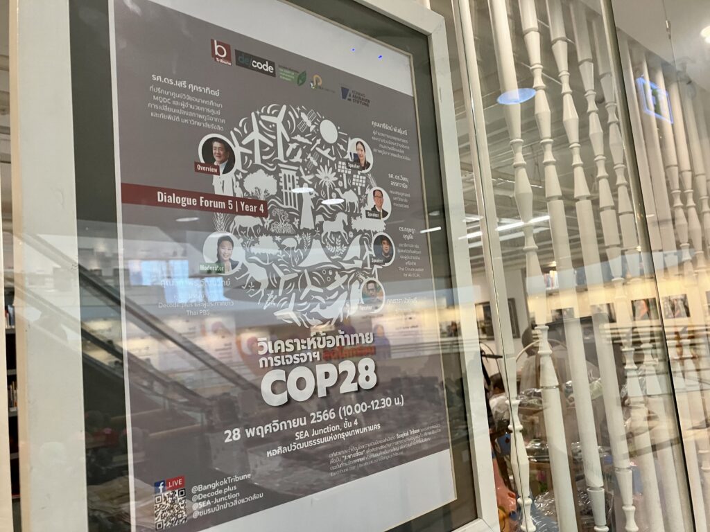 ผู้เชี่ยวชาญด้านการเปลี่ยนแปลงสภาพภูมิอากาศและนักวิชาการด้านเศรษฐศาสตร์และการพัฒนาที่ยั่นยืนและเป็นธรรม ร่วมวิเคราะห์ข้อท้าทายในการเจรจาฯ ลดโลกร้อน COP28 ที่กำลังจัดขึ้น ณ ประเทศสหรัฐอาหรับเอมิเรตส์ (UAE) ในเวทีเสวนา Dialogue Forum 5 l Year 4: วิเคราะห์ข้อท้าทายการเจรจาฯ ลดโลกร้อน COP28 โดยสำนักข่าว Bangkok Tribune ร่วมกับ Decode.plus, ชมรมนักข่าวสิ่งแวดล้อม, และ SEA Junction ด้วยการสนับสนุนของมูลนิธิคอนราด อาเด นาวร์ (Konrad Adenauer Stiftung, Thailand Office)