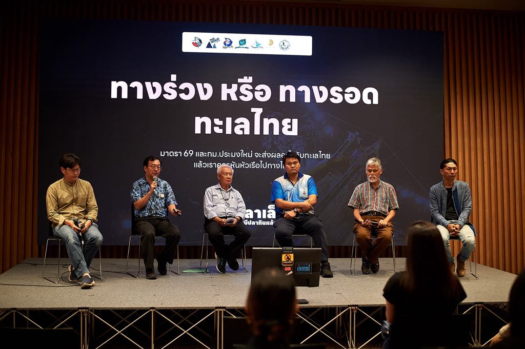 คุณปิยะ เทศแย้ม นายกสมาคมสมาพันธ์ชาวประมงพื้นบ้านแห่งประเทศไทย ได้บอกเล่าทิศทางและสถานการณ์ของท้องทะเลไทยผ่านการทำอาชีพประมงของเขา โดยเห็นว่า มีทางรอดอยู่ 2 แนวทางที่จะทำให้คนกับปลาสามารถอยู่กันได้โดยไม่สูญพันธุ์