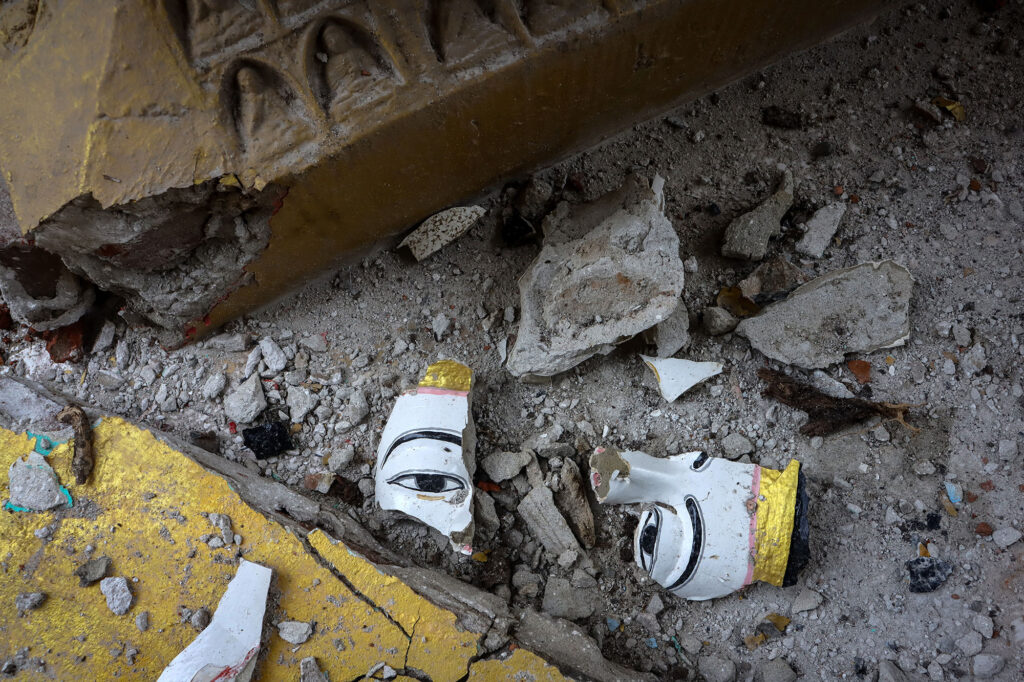 A collapsed pagoda seen in Kyaw Aung San Htar Monastery in Mandalay region on April 15, 2025. Across Myanmar, over 5,275 pagodas were reported to have been destroyed. Photo: ©Zide