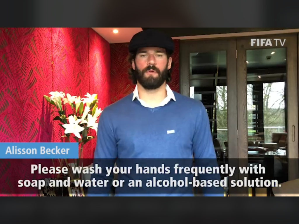 Among those, for example, is Alisson Becker, from Liverpool FC and Brazil Goalkeeper, the Best 2019 FIFA Men’s Goalkeeper. He said in the video; “It starts with your hands. Please wash your hands frequently with soap and water or an alcohol-based solution.