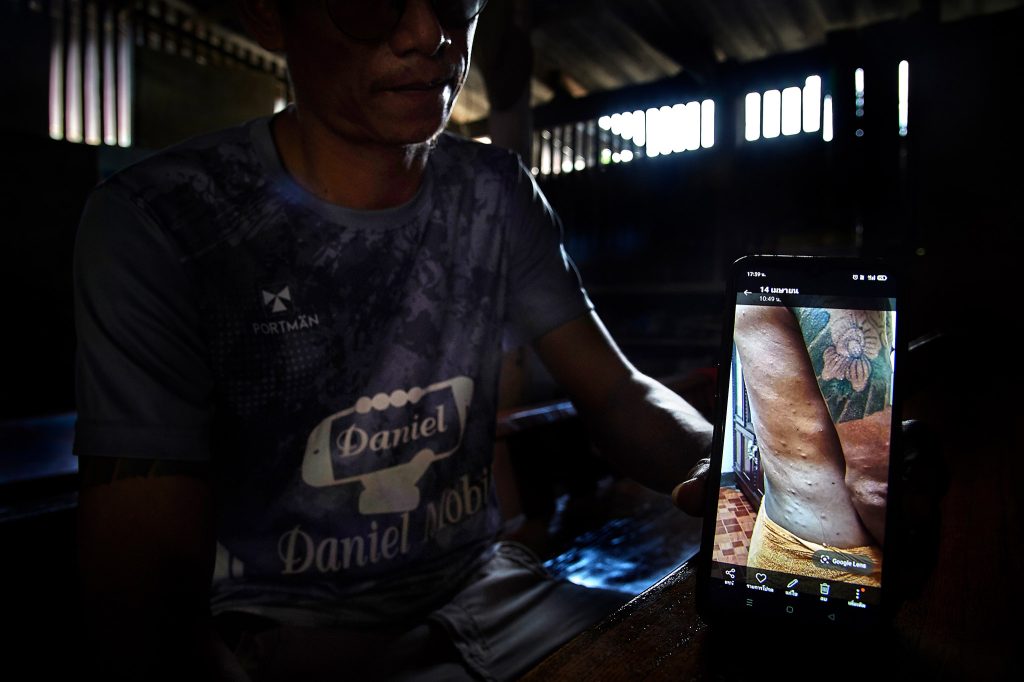 “They (community-based health promoting hospital) told us to wait for the test results, but I have not heard any thing from them; when I will know my test result or what I was sick of,” 42-year-old Gob Khodkham, a resident of Thaton’s Kaeng Sai Mool patch village, who had urine tested after working for hours in the water in April to build a bamboo raft for visitors during Song Kran festival to raise income and having some rashes developed on his skin.