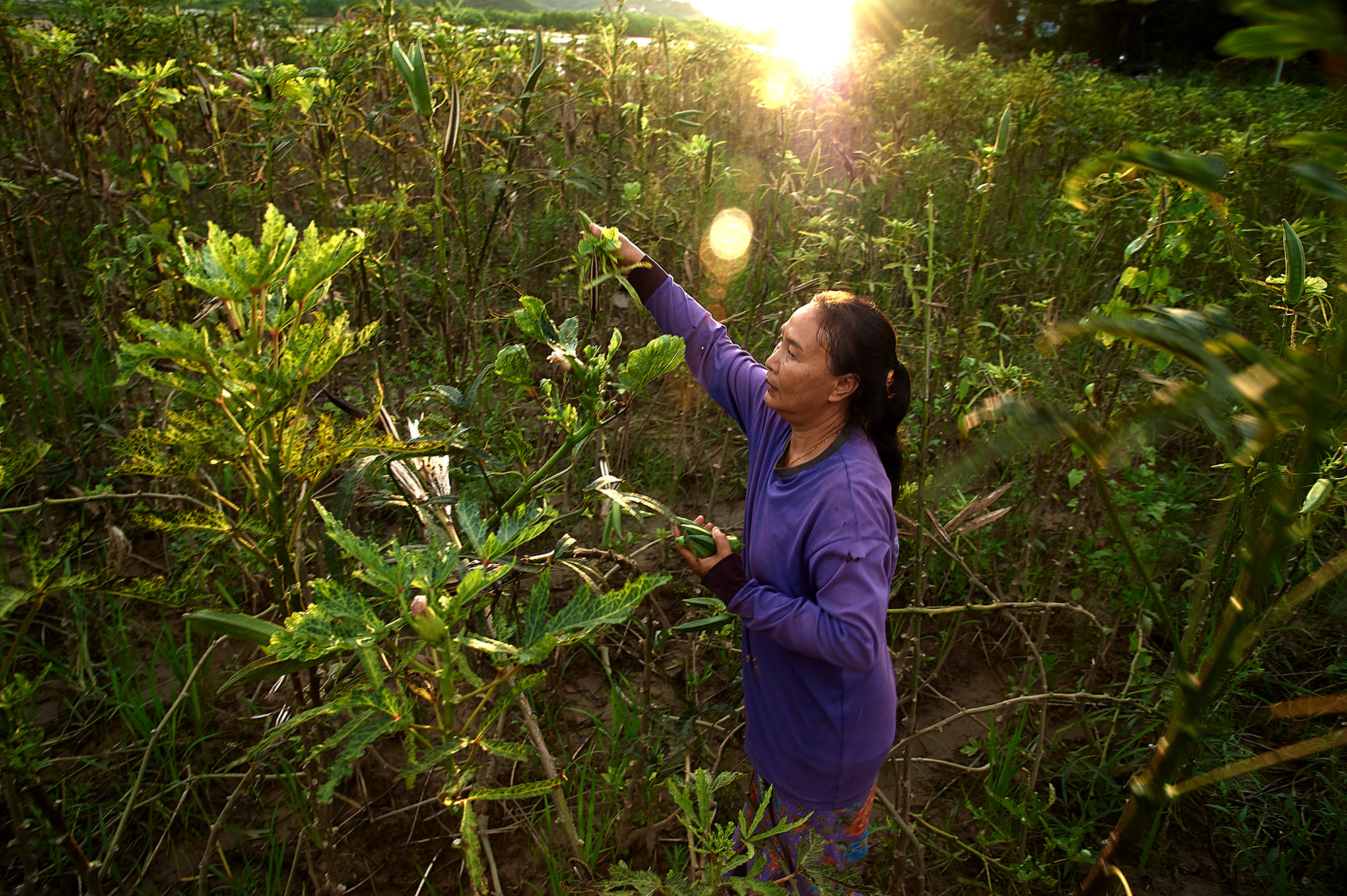 Some of her “Ladies” are left strained under the sunlight as the field was flooded with mud-laden floodwaters twice already during the past months. But Ms. Thip still considers herself lucky because, more or less, she managed to harvest this special species of Okra plants, the family’s main source of income.
