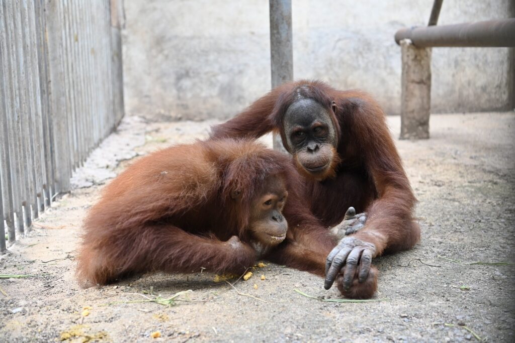 During their stay at the 3rd Wildlife Rescue Center (Prathap Chang) under Paro 3 in Ratchaburi Province, veterinarians examined their health and conducted blood checks and learned that they belonged to the Sumatran species (Pongo abelii).