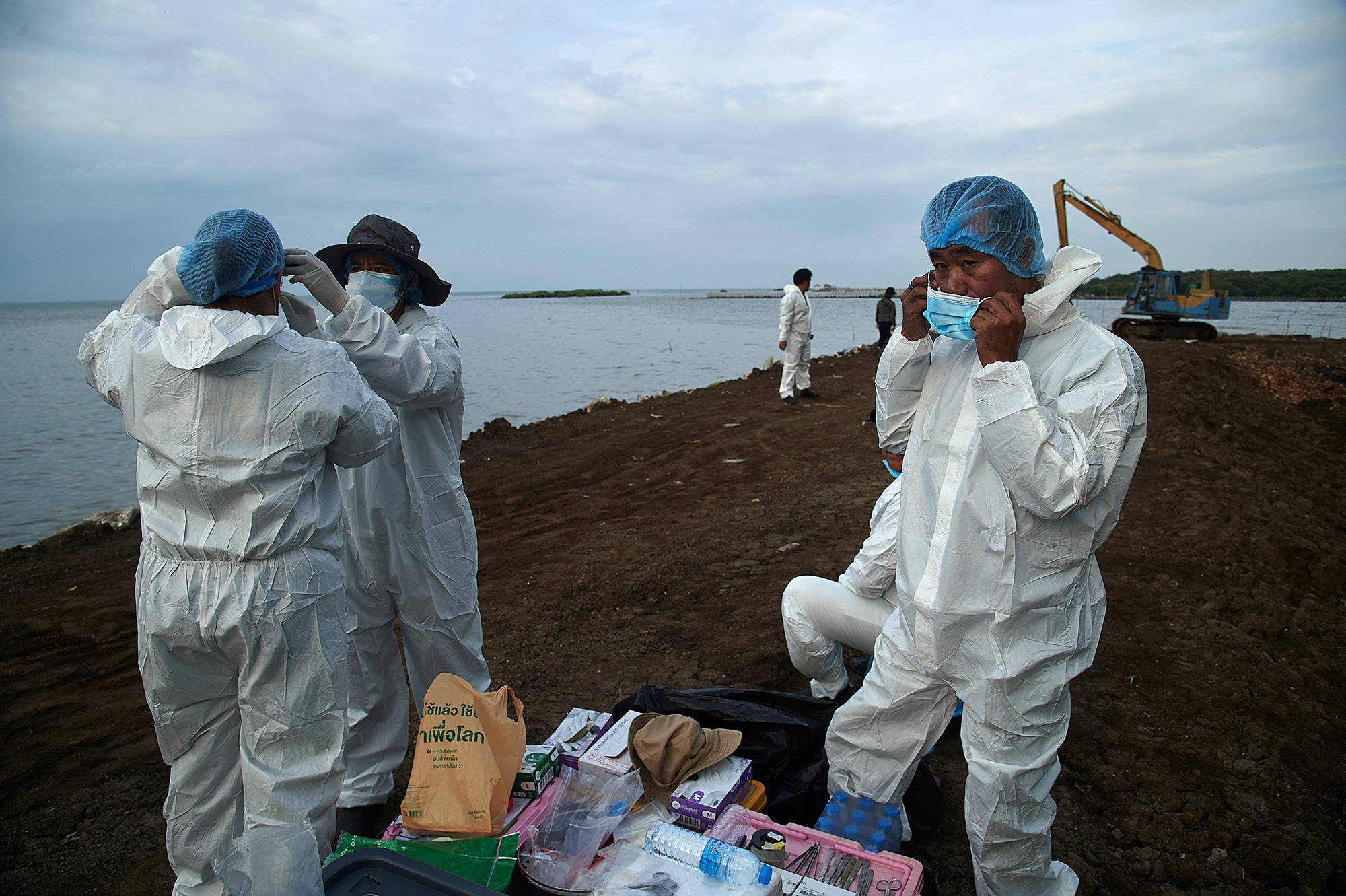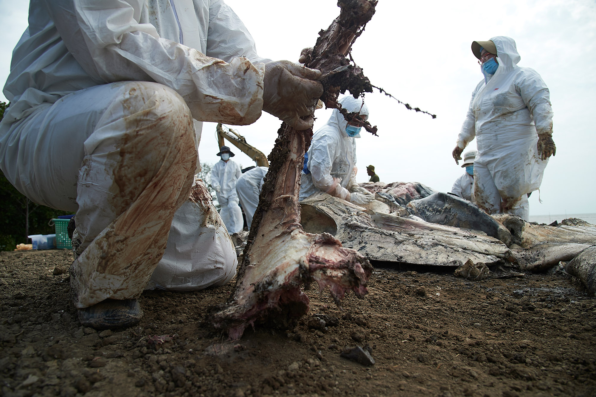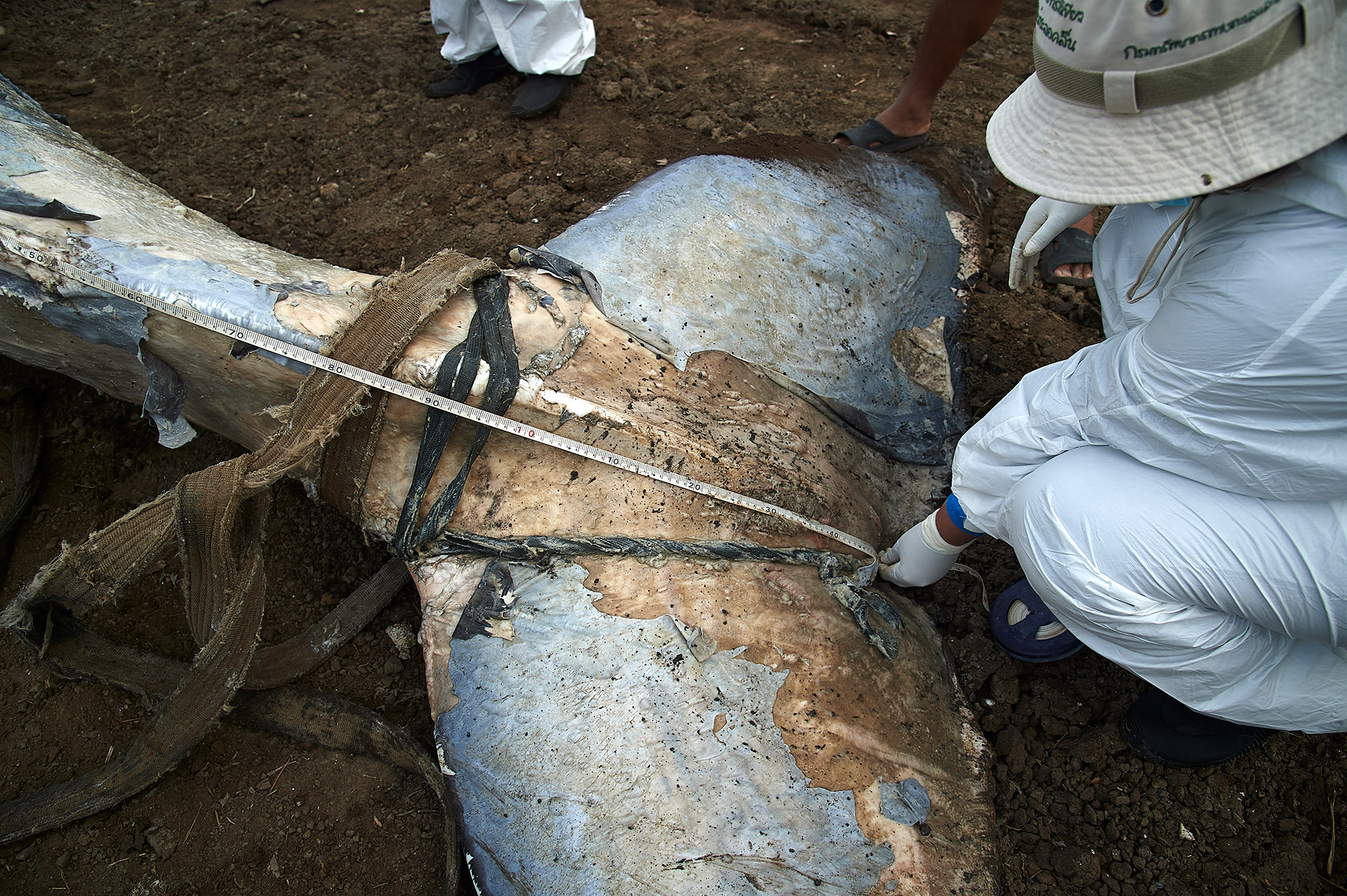 “At this point, I can’t tell who she was,” said Dr. Rachawadee Chantra D.V.M, Marine Veterinarian, Professional Level, of the DMCR’s Marine and Coastal Resources Research Center (Upper Gulf of Thailand), who checked the dead body round and round despite risks of possible diseases or toxins and bad odour.