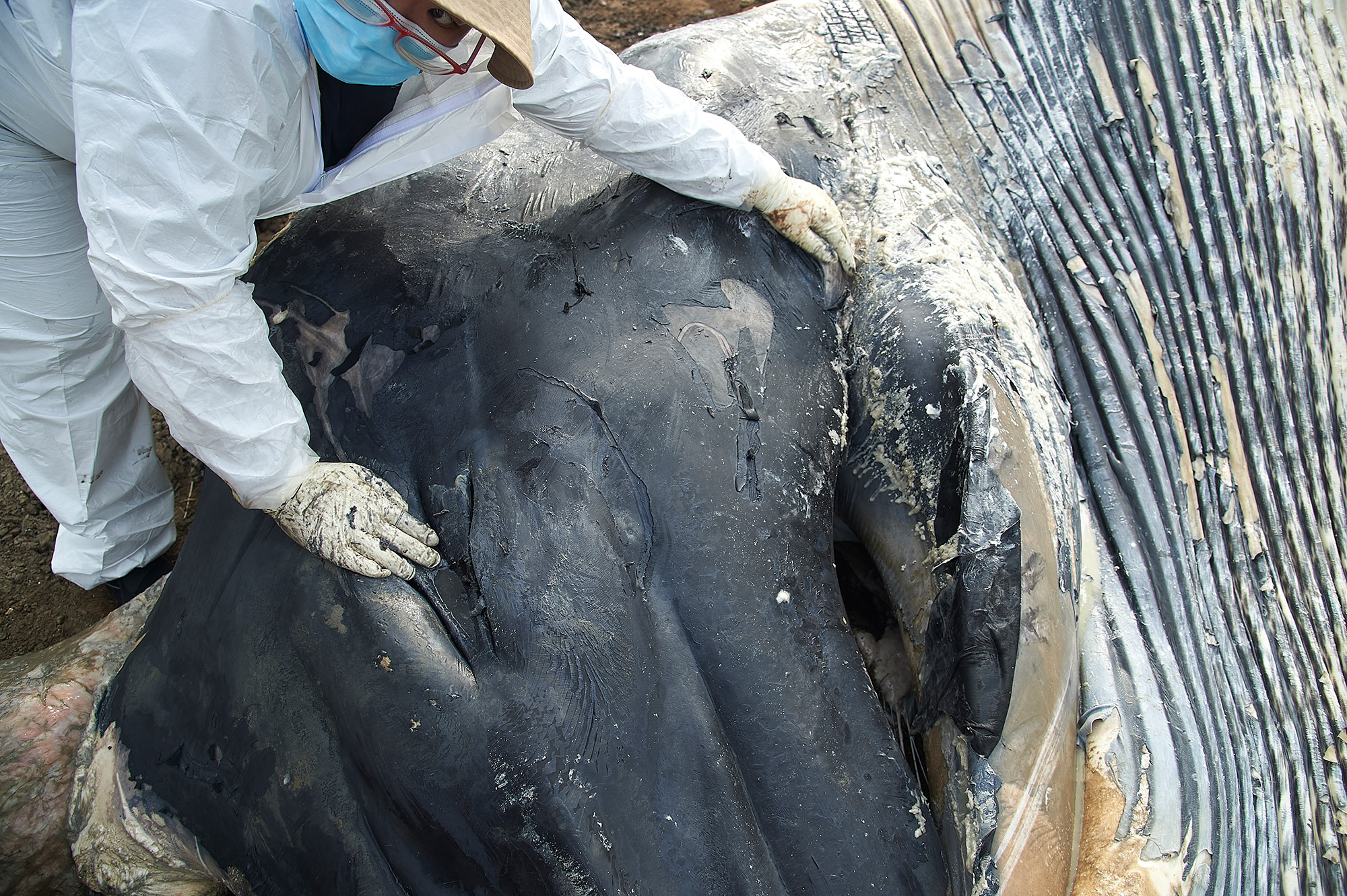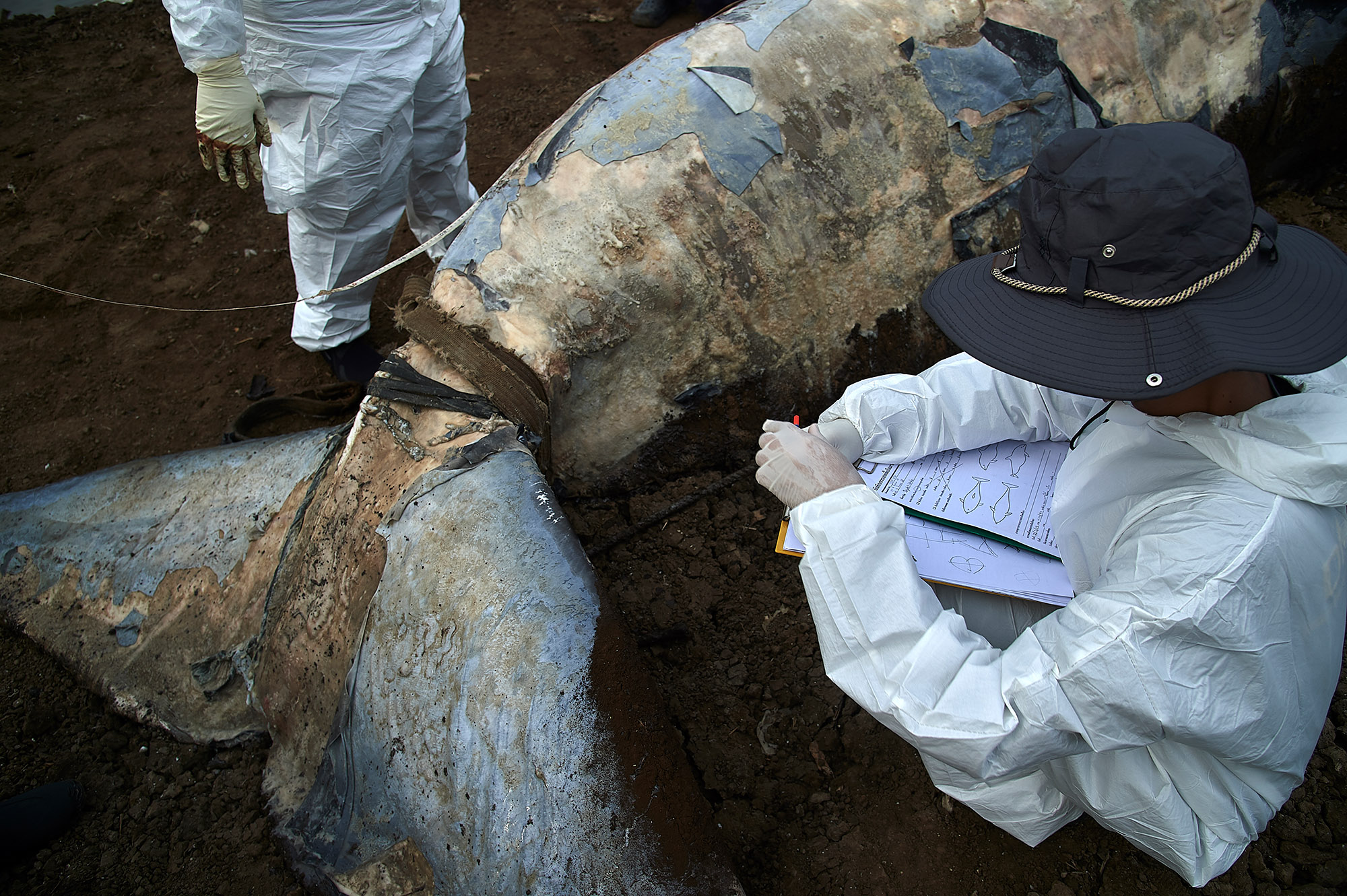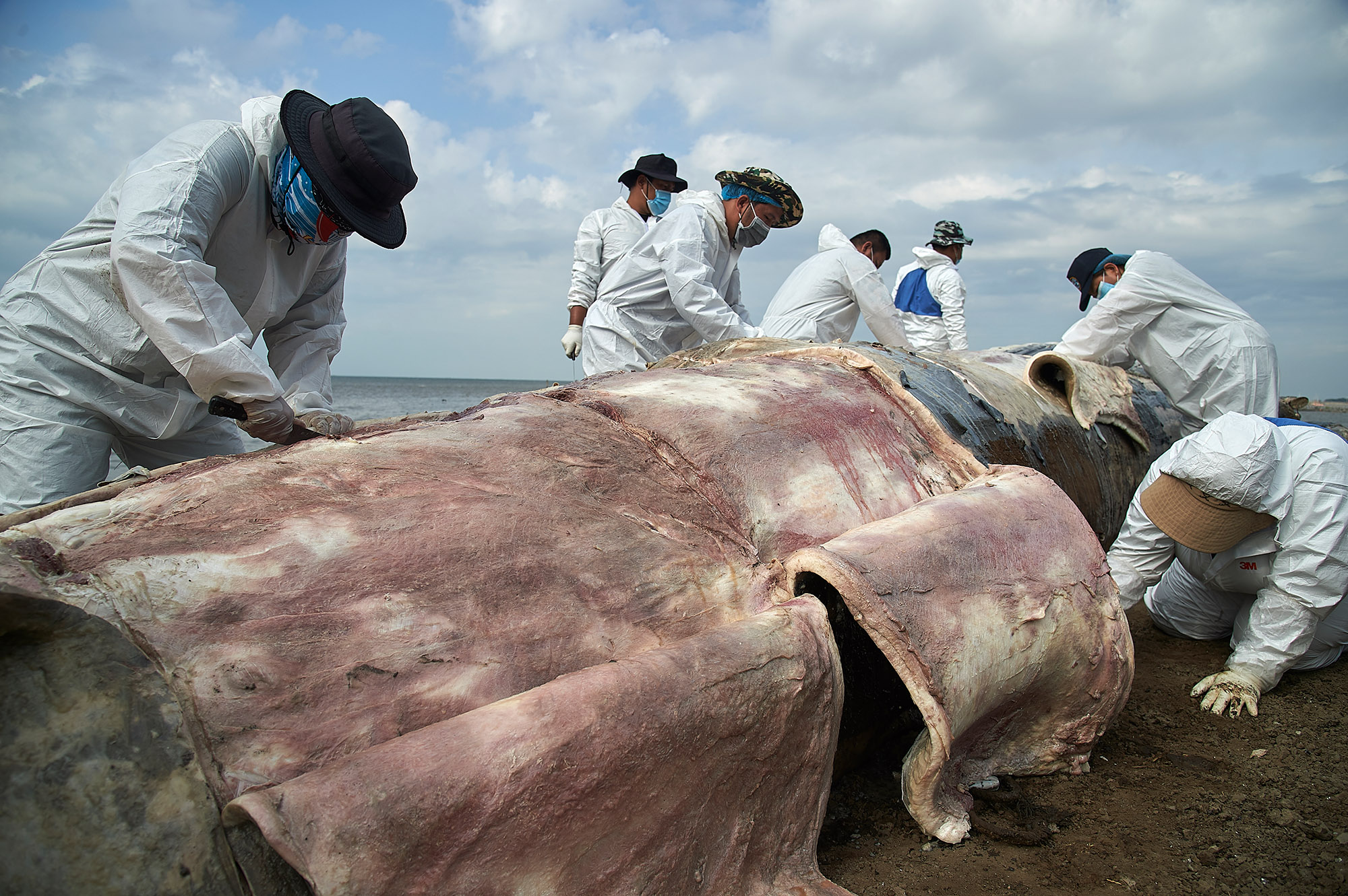 “At this point, I can’t tell who she was,” said Dr. Rachawadee Chantra D.V.M, Marine Veterinarian, Professional Level, of the DMCR’s Marine and Coastal Resources Research Center (Upper Gulf of Thailand), who checked the dead body round and round despite risks of possible diseases or toxins and bad odour.