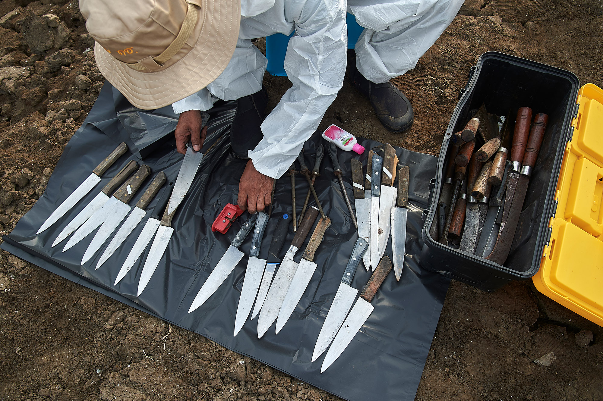 While her body was still in good condition, there was a cut on the tip of her left shoulder blade, suggesting that the area was also hit by a hard object with high centrifugal force. The tissue surrounding the wound was bruised with wide blood congestion, and on her back, there was a 160-cm-long bruise.