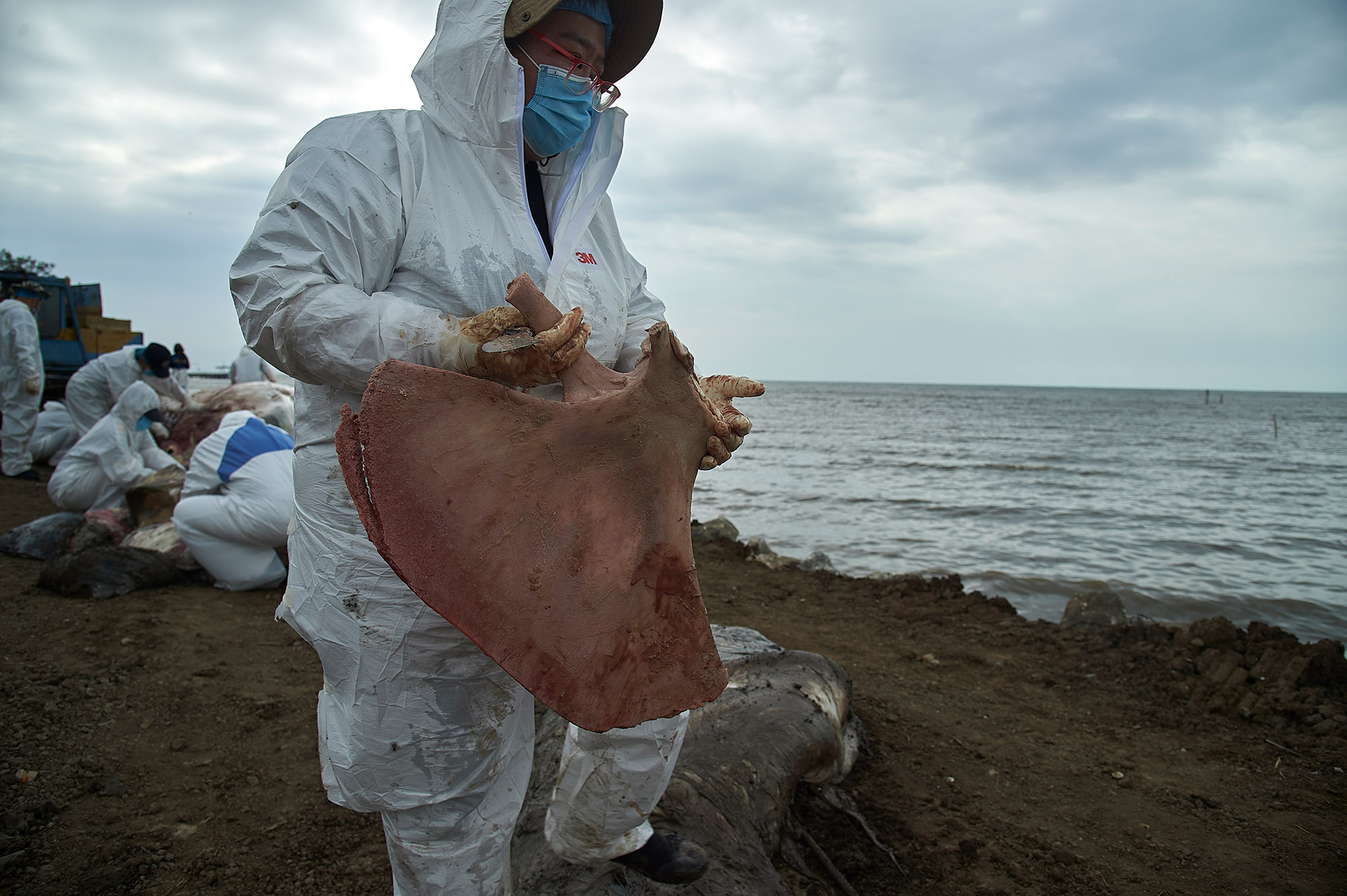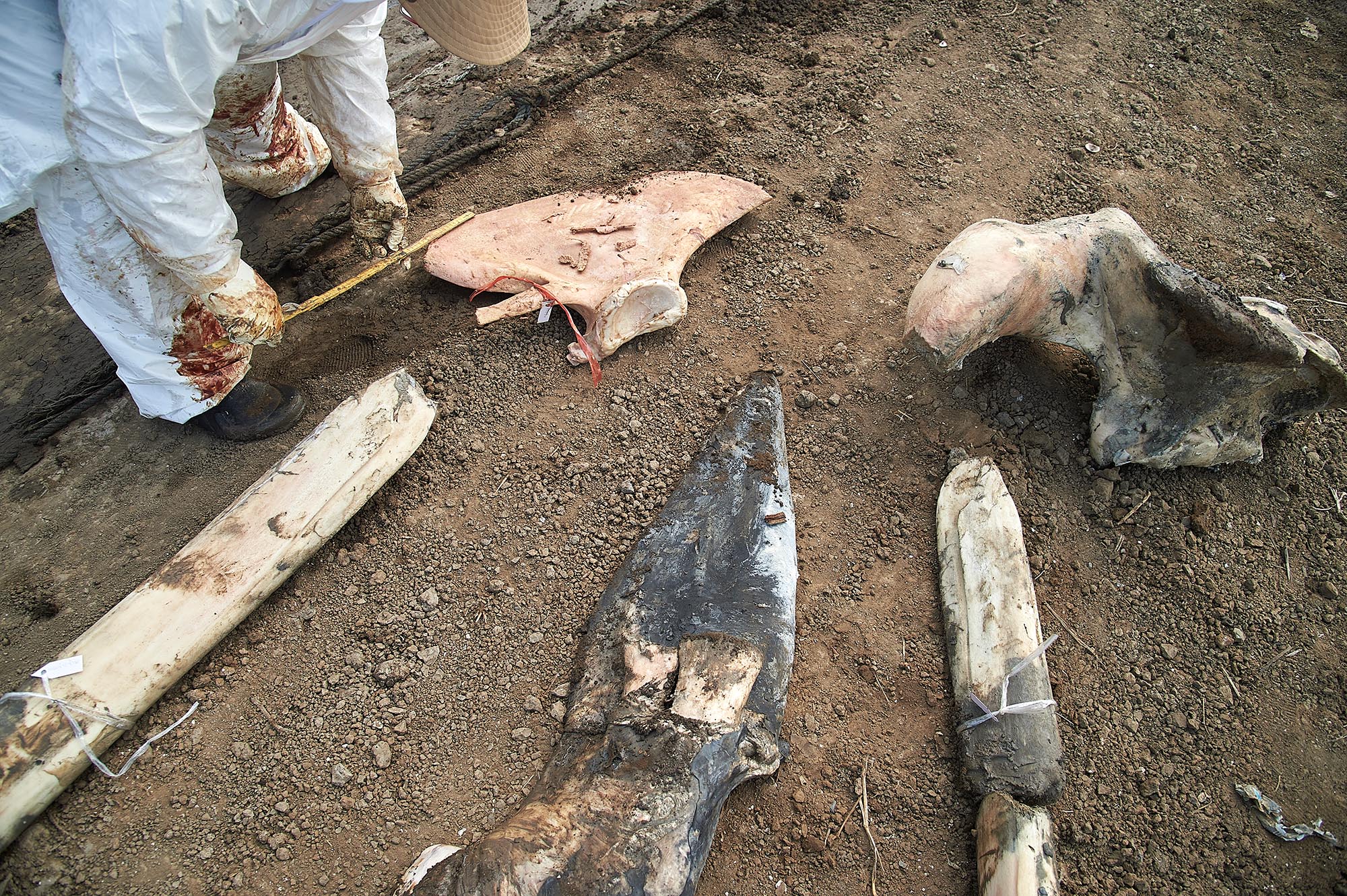 A daunting task amid various risks, including possible diseases or toxins from the dead animal.