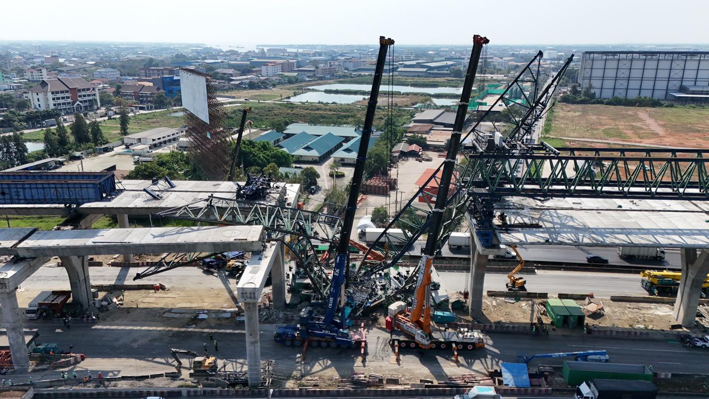 The collapse originated at the crane’s launcher gantry, where the failure and subsidence occurred. The incident in Sikhio district was also caused by a launcher failure, all of which suggests a failure in the supporting structure, not the main structural components, according to PM Anutin.