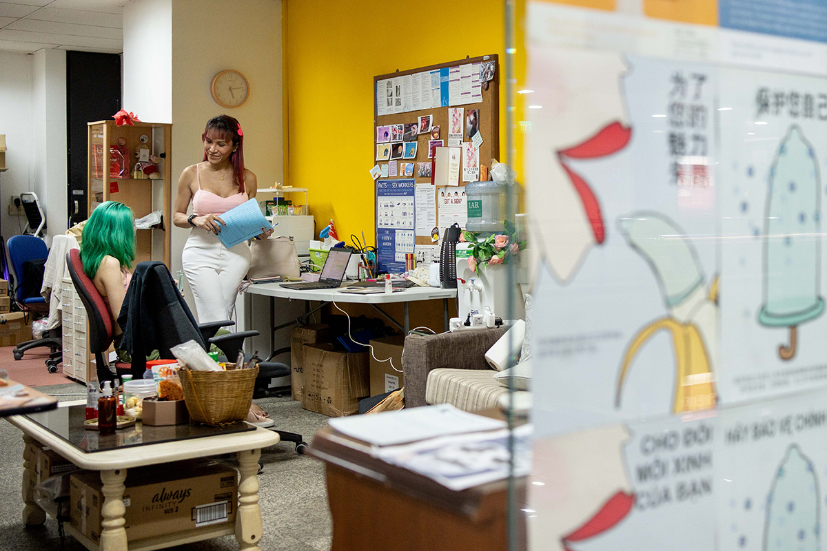 The non-profit organization HealthServe runs outreach efforts at designated recreation centres in the proximity of large-scale dormitories for migrant workers, January 22, 2022.