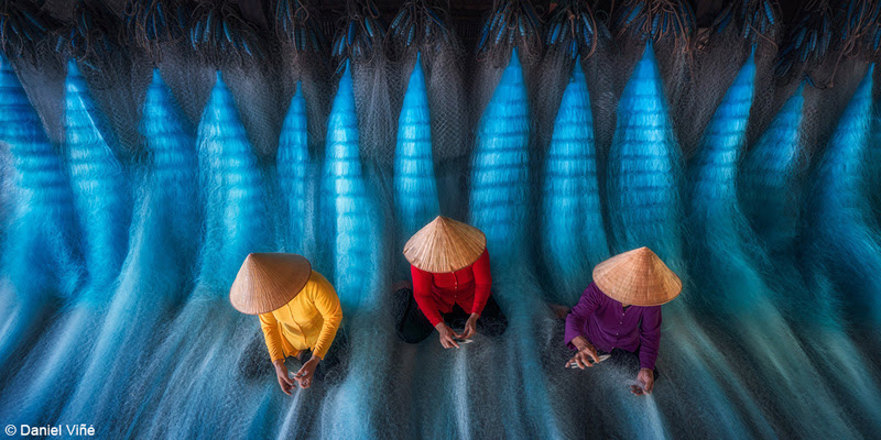 “In this coastal village of Vietnam, survival is woven in silence. These women, working in morning shade and salt-laden air, are the unseen guardians of sustenance. The nets they mend are not mere tools, but lifelines binding sea and community together,” said Viñé.